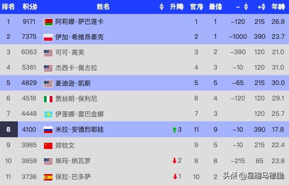 值得注主义是,跟着安德列娃踏进半决赛,她也拿到了390个积分和33万好意思元的奖金。这位17岁的俄罗斯天才仙女积分来到了4100分。
