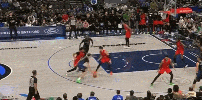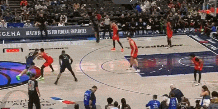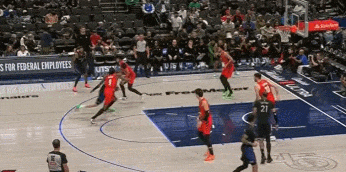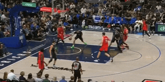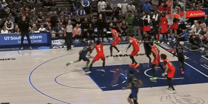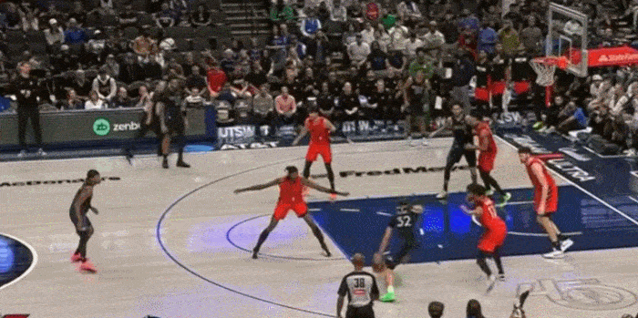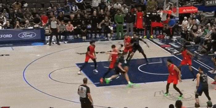 展示完运球,展示视线,三分线启动冲破 左手传到底角空位