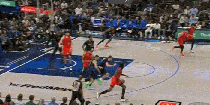 这是一个回合发生的事情 抢断后一条龙运球完成上篮2+1 这些运球速率难以念念象是这个身高能作念出的动作