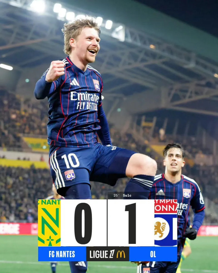 里昂 1-0 南特里昂(42分)客场小胜,遂愿拿到3分,放心了联赛第三的位置,并持续向身前的朗斯施压。
