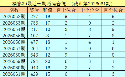 开奖回来:第2026061期福彩3D奖号为429。奖号格式为组六,大小比为1:2,和值为15,奇偶比为1:2体育录像/图片,012路比为1:1:1,跨度为7。
