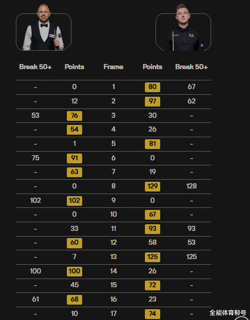 值得一提的是,打进德国众人赛决赛后,这亦然霍金斯在本赛季第二次打进决赛,此前是英锦赛决赛。略有缺憾的是,其时在决赛中,他以8-10不敌宇宙第一“准度王”特鲁姆普无缘冠军。