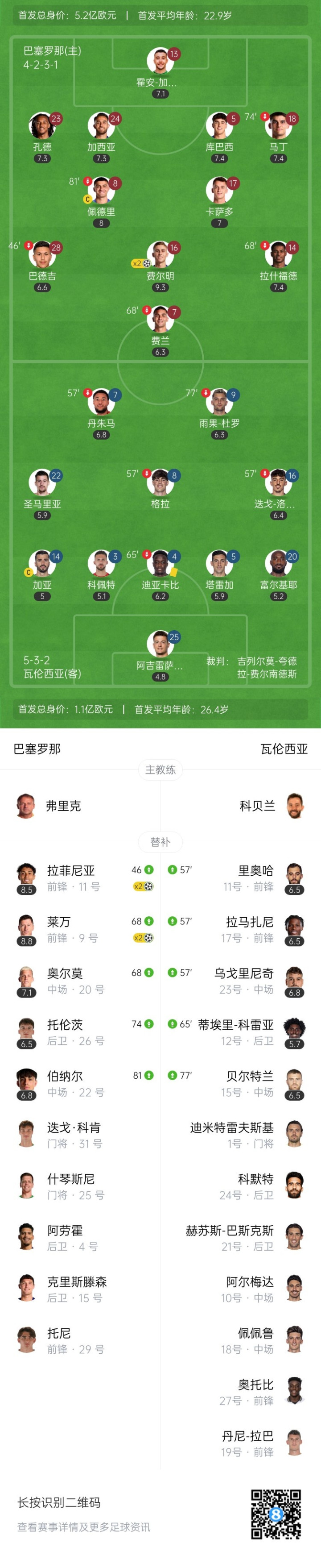 第53分钟,拉什福德左侧送出传中到后点,拉菲尼亚跟进包抄中计,巴萨2-0卓越↓